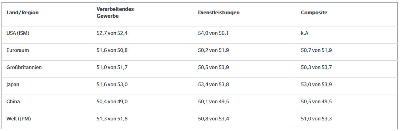 Im März brachen die Einkaufsmanagerindizes (PMIs) wegen des Ölpreisanstiegs aufgrund des Nahostkrieges ein. In den USA stieg die Einkaufspreiskomponente von 63,0 im Vormonat auf 70,7, den höchsten Wert seit Oktober 2022.